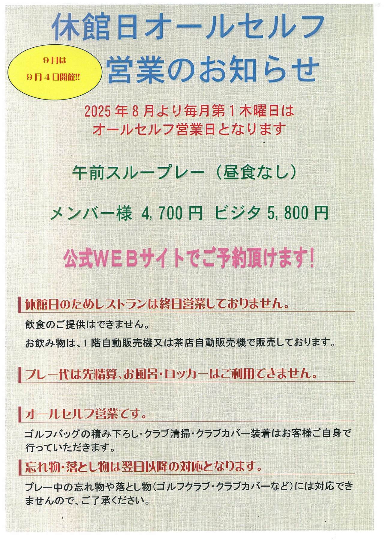 | 2025/09/06 | 10月料金カレンダー更新しました |
